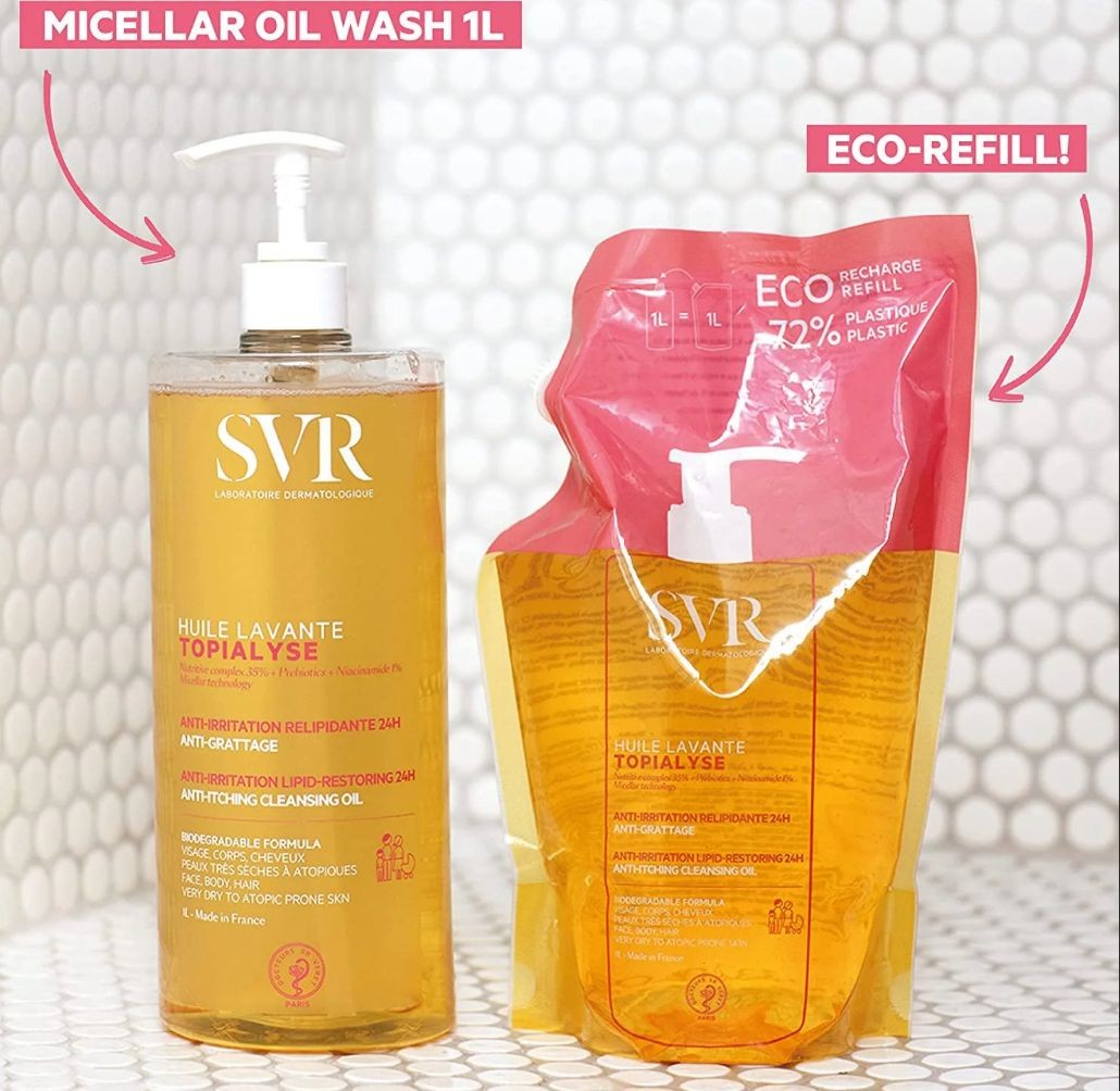 SVR Topialyse l’huile lavante est La 1ére huile micellaire qui nettoie en douceur les peaux sèches à atopiques de toute la famille.
