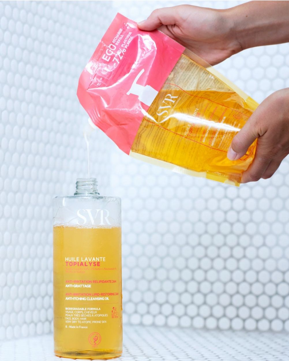 TOPIALYSE HUILE LAVANTE et le soin lavant qui remplace tous les autres : gel douche, bain moussant, shampoing, hygiène intime, nettoyant visage et mains, démaquillant sous la douche. Ne pique pas les yeux.